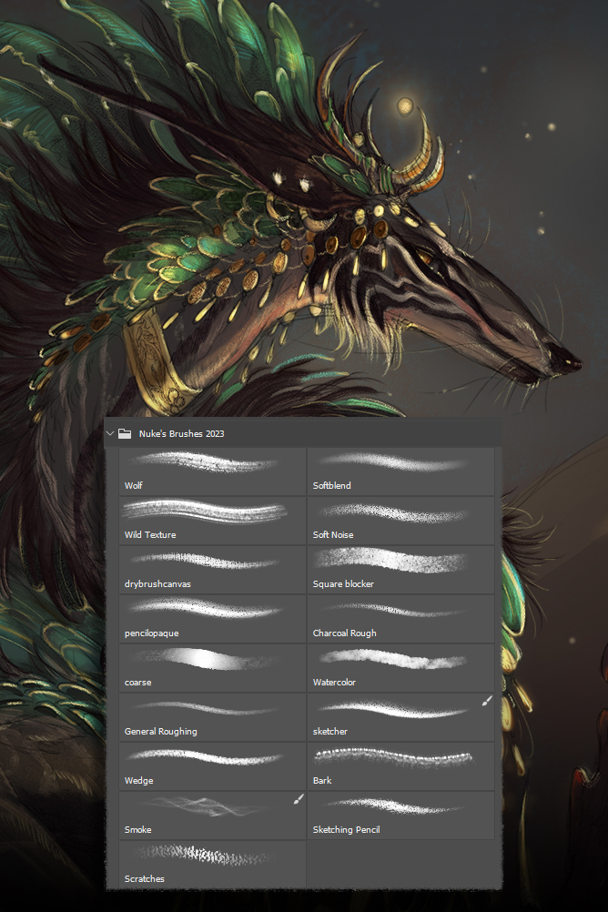 Most commonly used brushes, mostly geared towards being digital painterly friendly, slight grit exists in all of these brushes. Outside of the basic hard and soft rounds offered by CC, these are my go-to brushes. Because brush making is popular, I am keeping the price low for this set, there are plenty of specialty brushes already on the market. This is for those that want to see my own most-used set and I give no promises on whether or not these brushes are appropriate for any one person. I, however, use them daily in all my work.